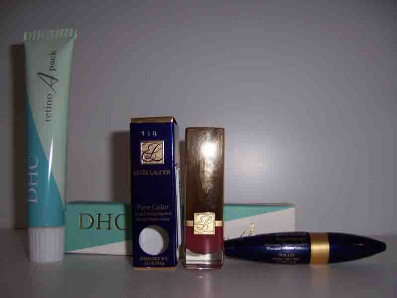 DHC retino A pack 3og 10块 ESTEE LAUDER Pure Color 口红 6块 ESTEE LAUDER Black 睫毛膏 9块 另外还有很多各式景泰蓝手镯9块,各式中国节脸谱3-9块..... 全是正品,没有一件是小样