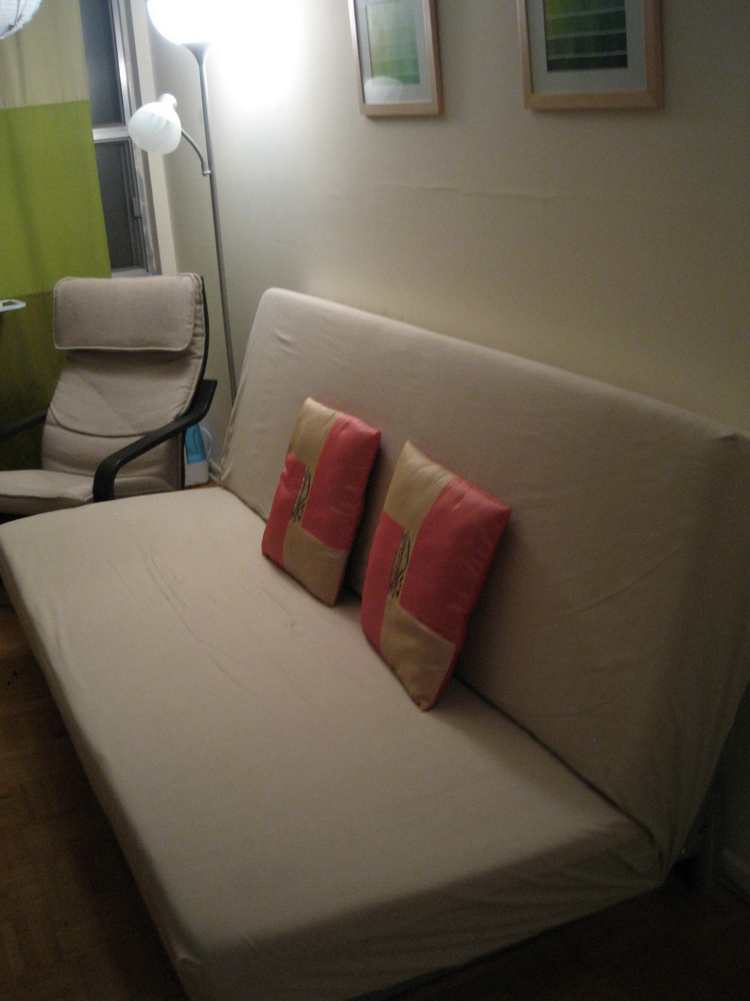 沙发床 可变成双人床. $80, 带storage box.(sold) 书架x2, $40一个.(sold) 全新双人床, 床架加床垫 $80.(sold) 截止在九月29号之前. contact phone #: 416 830 5095.