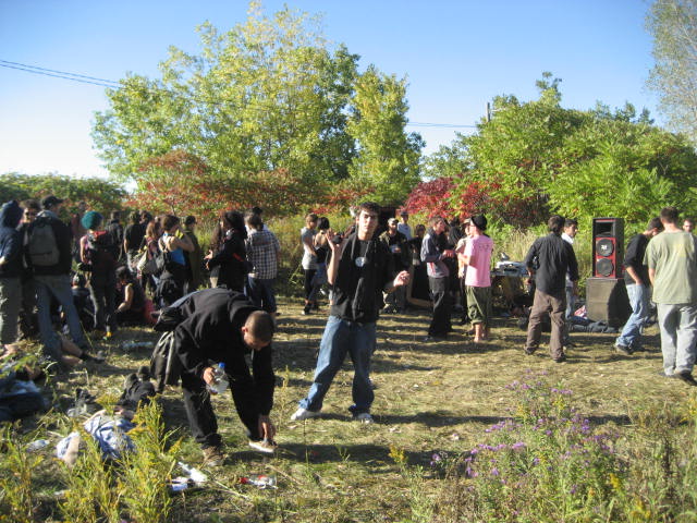 聚会大约150 -180人 , 再一个high way的下面,自己带着供电系统,音箱,租了2个校车带着一切设备。。。