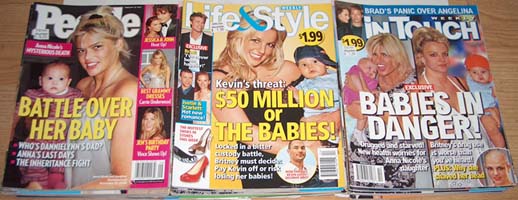 5。杂志等 今年的热销杂志,有People, Life & Style, Intouch等等,买的时候$1.99至$4.99加税,它们对扩大英文词汇量,提高阅读和写作水平都有很大帮助!! 另外还有英文和法文时尚美容等热销杂志,没有照片,都便宜甩了。