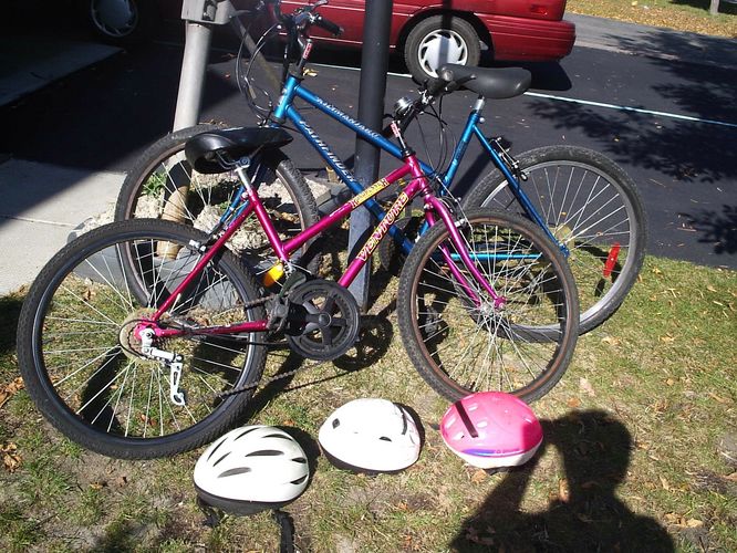 成人26" 自行车, [FONT="]Color[/FONT][FONT="] Blue [/FONT],带[FONT="] Mountain [/FONT]把手!$35;自行车安全帽, $1, (Red bike already sold)