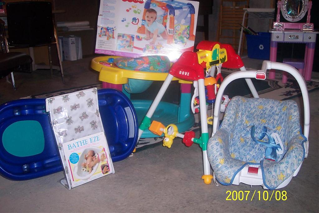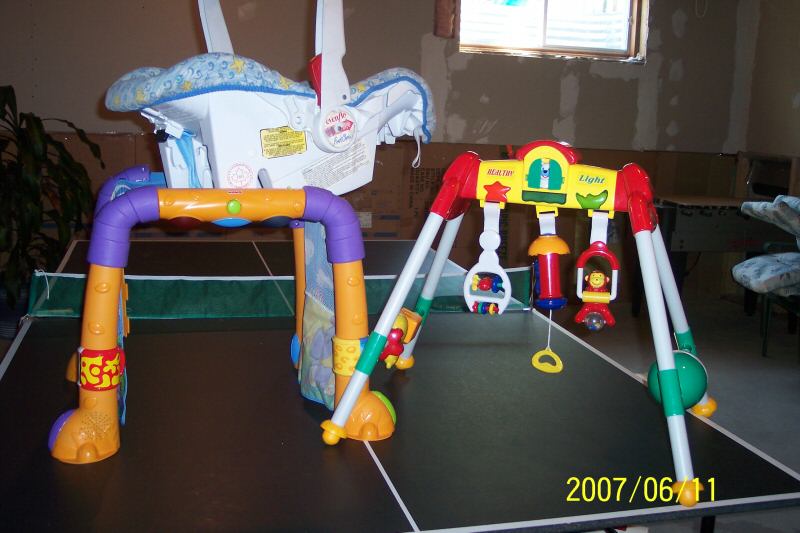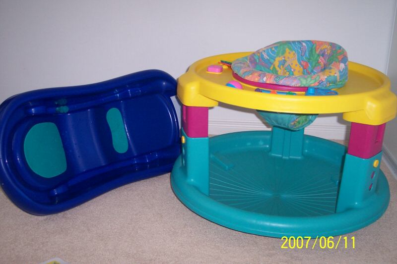 Another baby seating/jumper (bus, Safety1st) : almost new $20. I put one on the first floor, the other one on the second floor