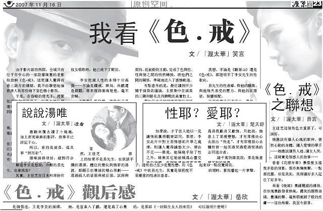 [FONT=宋体]昨天听到一位高人指点,写[/FONT][FONT=宋体]小说应该至少有主线和付线,冲突与高潮就是随两条线最后的交叉而产生。按此逻辑,在[/FONT][FONT=宋体]张爱玲的[/FONT]<[FONT=宋体]色[/FONT],[FONT=宋体]戒[/FONT]>[FONT=宋体]也中有主与付两条线。刺杀易先生是主线,可谓用尽心机,一次不行两次。而王佳芝与易先生的情感发展则是付线。随着剧情的演变,王对易产生了真爱,主付颠倒,才导致在最关键的时刻爱情压倒的国仇家恨,义无反顾地救了易的狗命,同时也搭上了自己的小命。由此可见,张爱玲也是两条主付线写法的高手。国人喜欢引毛的话“世上没有无缘无故的爱,也没有无缘无故的恨”。其实经历过真爱的人就知道,“爱”本身就是无缘无故,毫无理由。可以超越阶级,国界,种族,甚至世仇。“爱”常使人幼稚,糊涂,傻兮兮,忠奸不辨,好坏不分,是非不顾,六亲不认。不相信这种爱的人则怒[/FONT]<[FONT=宋体]色[/FONT],[FONT=宋体]戒[/FONT]>[FONT=宋体]为汉奸文学,卖国之举。其实对小命朝不保夕的小女子,她又怎会顾得了那么多呢。从这个角度看,我觉得张爱玲和李安的[/FONT]<[FONT=宋体]色[/FONT],[FONT=宋体]戒[/FONT]>[FONT=宋体]都达到了写作和电影导演的峰巅。板砖来了,我闪。