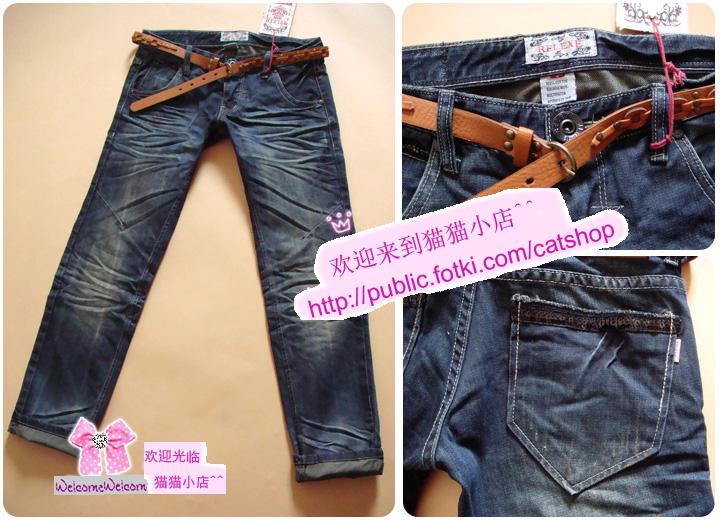 韩国RELEXE·黑色亮片个性翻边9分牛仔K●配皮带