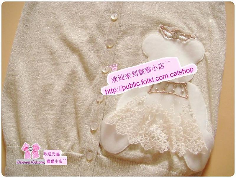 可爱贵族公主熊蕾丝钻金色针织衫