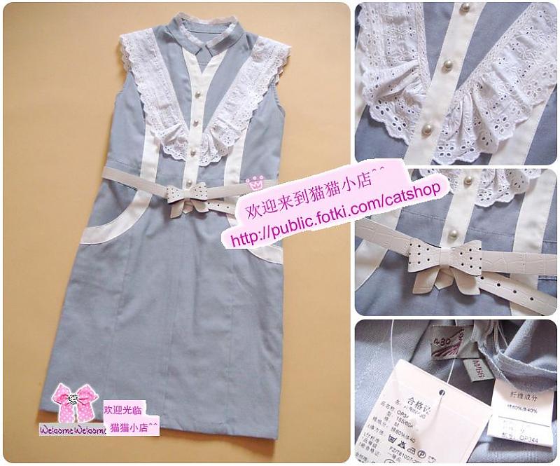 $45 韩版·公主蕾丝兰色气质背心裙/配皮带