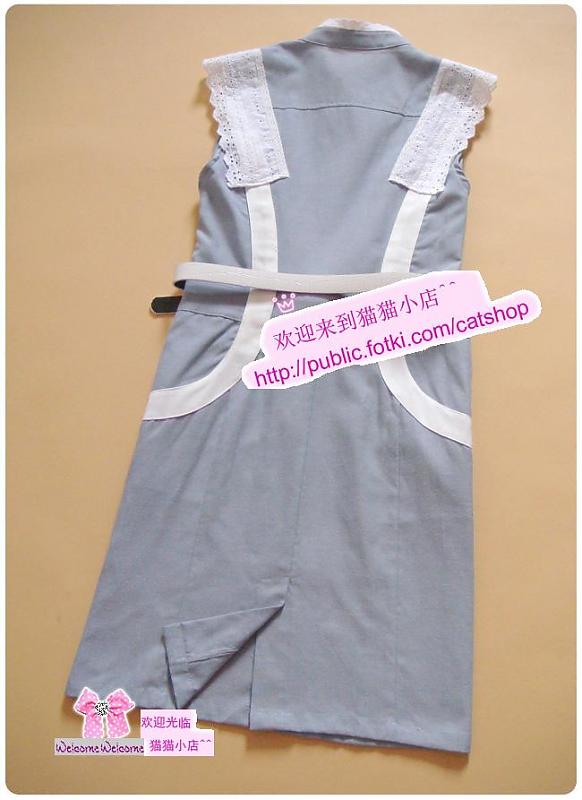 简约时尚 纯棉蕾丝宽大的花边 加上小蕾丝立领 加白色蝴蝶结腰带