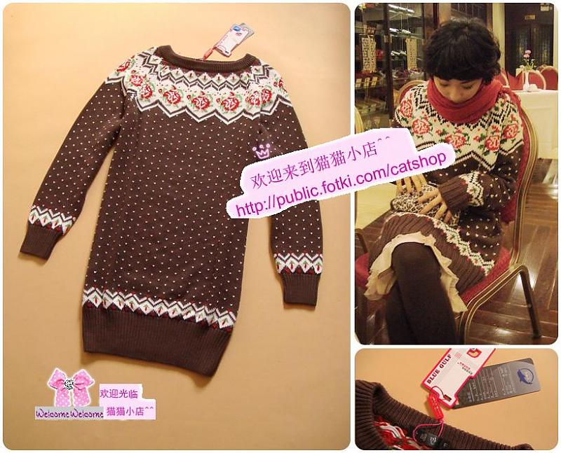 11月19新款 猫猫自留 出口韩国 经典花卉+爱心 长款毛衣 $68 颜色:深咖啡 甜美主义滴設計.毛线比较厚实,也很好搭配衣服 直接单穿配小脚裤,靴子或穿在大衣里打底都超好看,超洋气的,迷人小妞诞生啦~ 猫猫自留款,好喜欢好喜欢,一定要的必買款! 【吊 牌】主标、吊牌 【质 地】95%棉、5%莱卡 【尺 寸】均码(胸平铺94cm,100cm内都能穿,Y长80cm,袖长56左右,肩宽基本不限