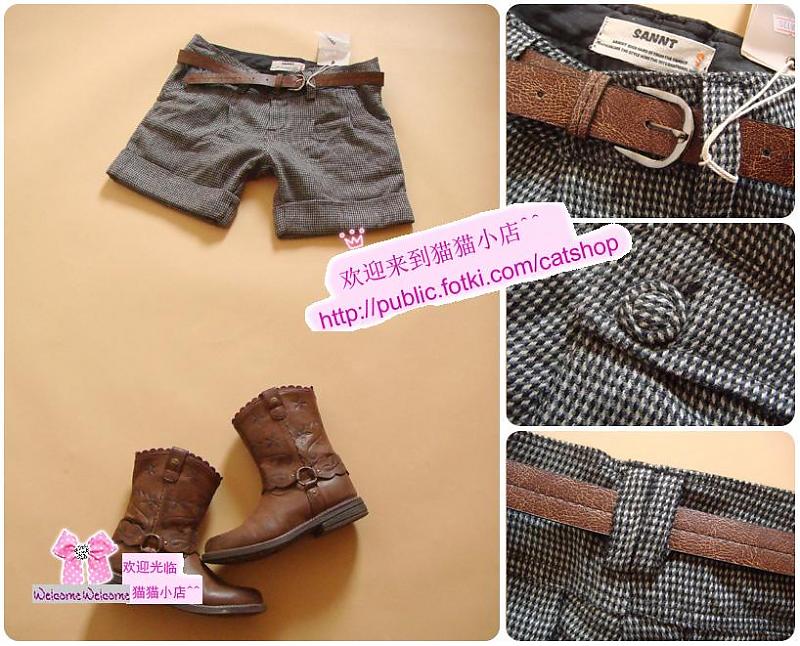 百搭千鸟格 羊毛呢短裤 配细腰带 $68 秋冬新款.日单舒适小短裤 冬天,搭配靴子、厚袜子的必备款 风格适合有性格、有品位的MM 冬季照样可以秀美腿啦.......! 【尺 寸】S、M S:长34CM,腰围平铺73,大腿围56,裤口围50,前裆21,后裆31,臀围90 适合25,26 M:长34CM,腰围平铺77,大腿围58,裤口围51,前裆22,后裆33,臀围94 适合27,28
