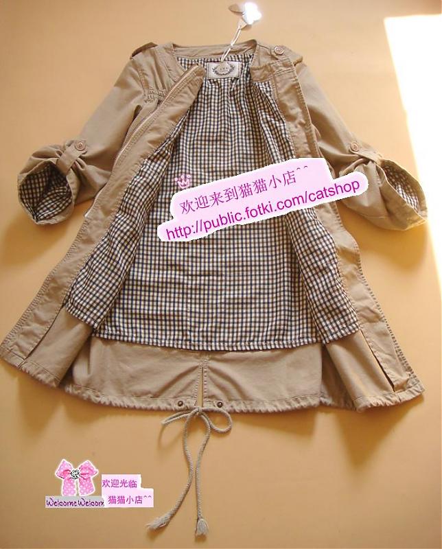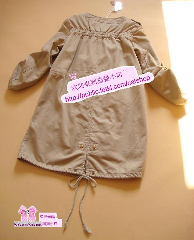 2WAY 下摆系带.工装款.休闲小风衣●2色 $80 一款经典不衰的人气风衣 有质感 一定要拥有的单品 无论面料和剪裁都无可挑剔 下摆可调节的系带 袖子采用2WAY设计,收起是7分袖,放下就是长袖哦, 剪裁上很注重细节效果 所以上身的美感不用多说 内衬也华丽无比!款式上不算太正式还是比较偏向休闲 所以上班、逛街都适合呢,2个颜色可供选择。推荐!~ 吊牌:主标、吊牌、无洗标 质地:棉、全内衬 尺寸:均码(肩宽38cm ,胸围平铺94cm ,长度78cm ,袖长56cm) 颜色: 浅卡其 黑色