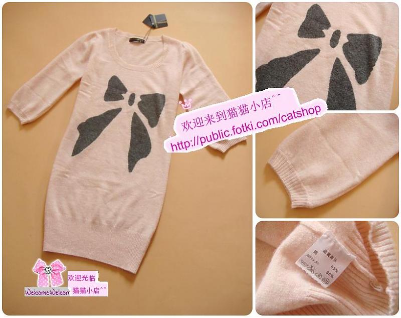 JING^^浅粉色大蝴蝶结长款毛衣/洋装 $72 JING秋冬新款.甜美长款毛衣洋装.美好品质!!! 簡约主义滴設計.面料很柔软细密,颜色很嫩,很好搭配衣服 可直接当裙子穿配,天冷也可以穿在大衣里打底都超好看,超洋气的唷~一定要的必買款! 【吊 牌】主标、洗标、吊牌 【颜 色】浅粉 【尺 寸】均码(胸平铺88cm,92cm内都能穿,Y长86cm,袖长44CM,肩宽35CM)适合平时穿S-M的宝贝穿 另外有黑色,灰色可以预订(需要2-3天调货时间)
