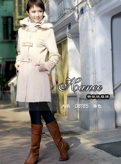 ECA_VIVI 专卖 新手上路 VIP 注册 2007-07-20 消息 3,971 荣誉分数 55 声望点数 0 2007-11-27 #200 74.正品"Hanee"毛领中长修身呢子外套( 毛领可取, 领口可翻下来也可完全扣严,很修身的一款厚外套) 货号:Hanee8199 尺寸:分ML码.衣长M72CM L74CM 胸围M90CM L94CM袖长60-61CM 面料:麦呢 预定价:$50 黑色 附件 Hanee8199黑598.jpg 81.8 KB · 查看: 230