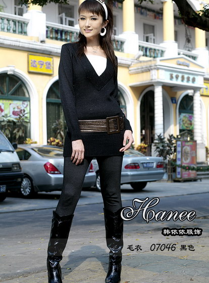 ECA_VIVI 专卖 新手上路 VIP 注册 2007-07-20 消息 3,971 荣誉分数 55 声望点数 0 2007-12-02 #206 76.正品"Hanee"V字领包臀优美线条毛衣( 连内搭, 送皮带) 货号:Hanee7046 尺寸:均码,衣长75CM胸围84-88CM袖长60CM 面料:针织 预定价:$32 黑色 附件 Hanee07046黑248.jpg 106.2 KB · 查看: 142