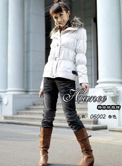 ECA_VIVI 专卖 新手上路 VIP 注册 2007-07-20 消息 3,971 荣誉分数 55 声望点数 0 2007-12-02 #223 80.正品"Hanee"大毛领藕节收身短棉袄( 毛领可取) 货号:Hanee06002 尺寸:分ML码,衣长M58CM L60CM袖长58-59CM胸围M96CM L100CM 面料:油光斜 预定价:$40 黑色 附件 Hanee06002黑425.jpg 104.2 KB · 查看: 154