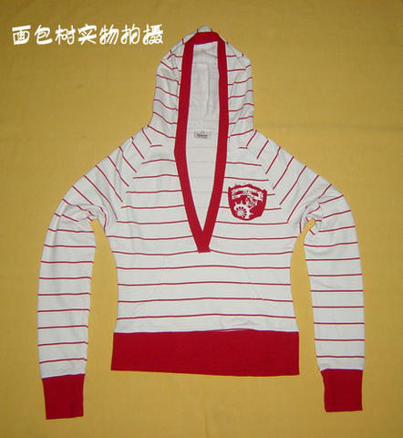 面包树秋装新品*PLAY BOY 外贸原单*内细圆绒带帽开衫