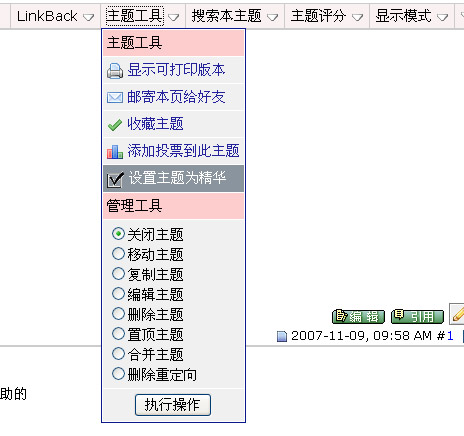 各版版主请使用主题工具菜单 增加或者取消主题精华 如下图