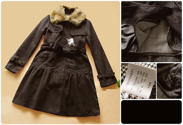 灰色仿兔毛领裙款下摆可拆卸棉衣 ●素材:(ブラウス部分)棉 100% $85 ●尺寸:长87CM ,胸围90CM,肩膀36CM.袖长57CM 特别舒服的棉的面料.外面的那件是100%棉的面料,这款YY又可以做风衣,又可以做棉衣,款式非常的PP.冬天里面寻找一些活泼可爱的感觉,蝴蝶节腰带,裙式下摆,给人的感觉十分的舒服这件YY确实可以做裙子来穿哦,整体的味道就是这个样子哒.内衬的颜色是小格子的花纹,毛领是假哒,可以拆卸.