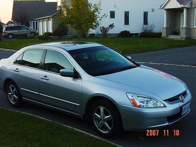 2003 Accord EX-L Heated Black Leather Seats. Sun Roof. Alloy Wheels. Well Maintained. Rust Proof. 70K KM. Extended Warranty. 送4个新Snow Tires including rims ready to install. Ask for $16,000.00 Tel 613 291-3809.