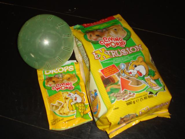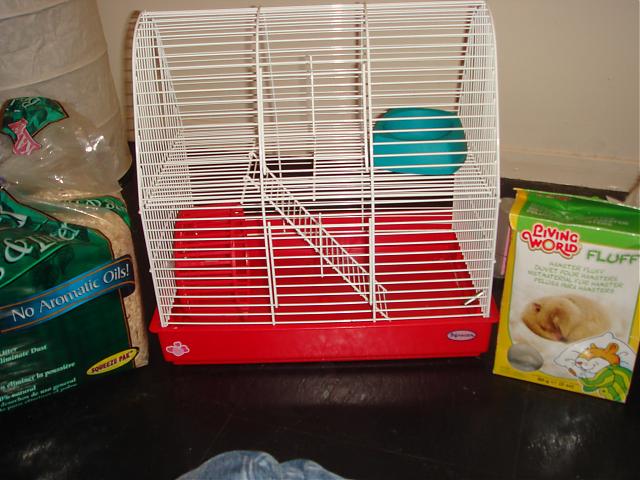 PLUS: A ball for he hamster to run around the house in , bedding, full bag of food, treat and hamster fluff for sleeping on.