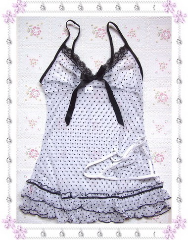 【商品特点】 这款卖的很好哦,因为很可爱但是也有点性感,满适合居家穿的啦,面料也很舒服,配全蕾丝内裤,展现迷人味道