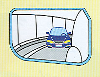 行驶中,为了清楚地看到左后方的情况,把镜子调整到路面占镜子二分之一左右、同时能看到一些自己车身的位置上。