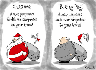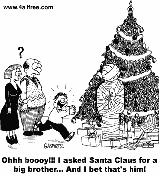 昨晚临睡了,发现还没有帮圣诞老人给儿子准备一份礼物。他爸爸说,要不告诉他,北极今年不景气,圣诞老人没有足够的钱给每个人买礼物?他妈妈良心发现,记起去年欺他年幼,也没有准备圣诞老人坐雪橇送来的礼物,所以满屋子转地想办法。