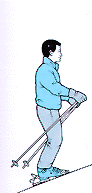 • Keep the pressure distributed evenly on both skis, otherwise you will veer across the slope. Keep your skis at hips' width apart for maximum stability.