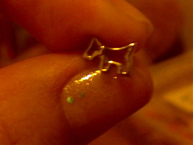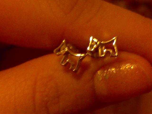 全新可爱狗狗的耳钉,店主说是镀银的,其实是真的哦,偶是过敏体质,所以带不了一些金属的耳钉,我的耳钉基本上是他家的,从来没过敏过,这对狗狗的耳钉实在是太可爱了,一直没舍得带,现在老啦,不适合了~~~(*^___^*) 只要4刀