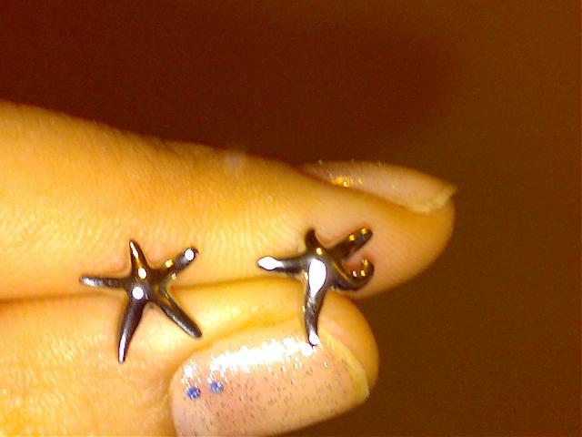 全新可爱滴海星的耳钉,店主说是镀银的,其实是真的哦,偶是过敏体质,所以带不了一些金属的耳钉,我的耳钉基本上是他家的,从来没过敏过,可爱慵懒的造型,KAWAYI的不得了,而且两边的形状是不一样的,mm们注意到了么? 现在只要4刀哦