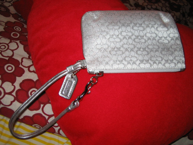 Coach mini pochette $50 银色闪光布的,很漂亮,可以当宴会包,也可以放些零钱,卡。 全新,绝对真品。Coach也不是很昂贵,没必要仿了。boxing day那天刚买的,一次没有用过。回来发现自己很少用这种小包包。当时觉得漂亮就买了。现在转给喜欢的MM吧。有兴趣悄悄话联系。