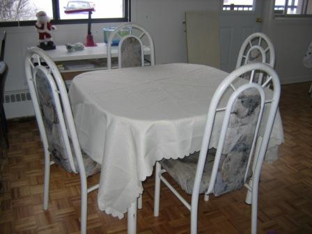 所有东西价钱可商量(819-771-5683) 一白色餐桌(包括4椅子):可拆,可扩展,携带非常方便,$40 一深褐色色餐桌(包括3椅子):可拆,可扩展,携带非常方便,$20 毯子:8$ 电视天线:8$ 咖啡机:15$