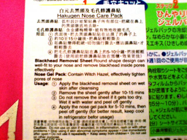C cleanlam 新手上路 注册 2004-08-17 消息 193 荣誉分数 0 声望点数 0 2008-01-02 #5 日本 白元牌去黑頭及毛孔修護鼻貼 兩套$6 可用8次 附件 DSC01967.jpg 33 KB · 查看: 390 DSC01973.jpg 67 KB · 查看: 388