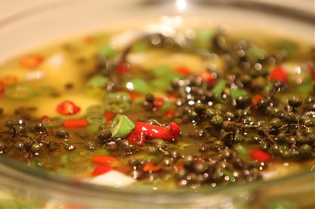 2007,水煮鱼又有所发展,最新的藤椒鱼,火起来了,用新鲜的藤椒代替原来的花椒,用新鲜的辣椒代替原来的干辣椒,浓浓的麻辣香味冲击着味蕾,尝尝吧!
