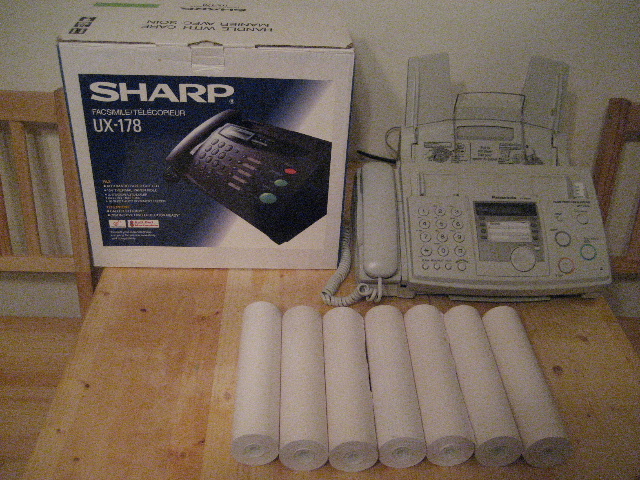 16. Panasonic Fax with Copier, [FONT=宋体]原价[/FONT]$129.99+Tax, [FONT=宋体]现卖[/FONT]$35.[FONT=宋体]另奉送[/FONT]copy paper.包装盒不是这个.减价卖$30