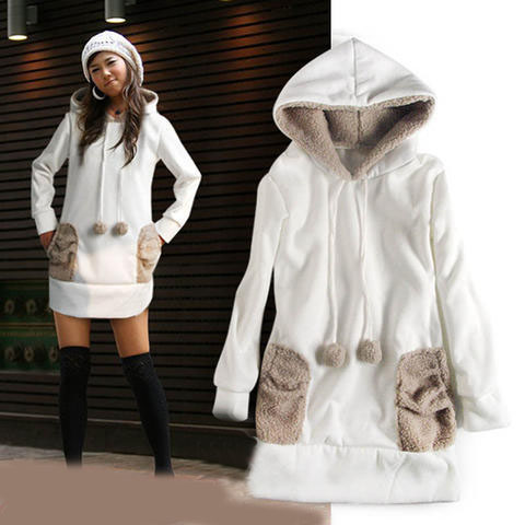 3. 毛绒连帽长款卫衣, 内有绒毛, 咖啡色绒毛兜和毛球是这件衣服的亮点, 穿上暖暖的很舒服 $26--现价$15