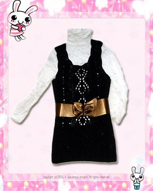 7. 黑色毛织长款背心(号码160, 送内搭白色高领T恤, 不送腰带, 需要腰带加5刀) $34-- 现价$20