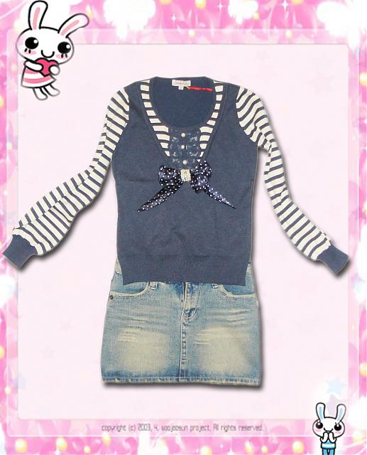 11. 专柜正品条纹袖水玉点蝴蝶结假两件套毛衫 ( 号码160 ) $33--现价$16 !!!!