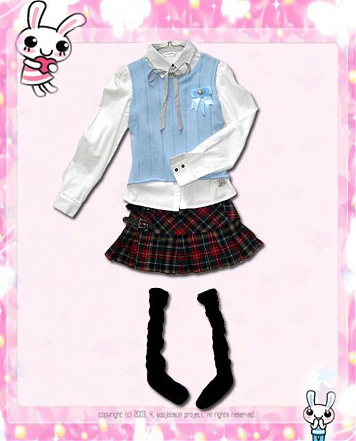 蓝色毛织短背心 $19--现价$10 白色系带白衬衫(加厚) $20----现价$15 英伦格子短裙( 含15%羊毛成分) $19----现价$15