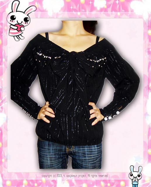 14. only 正品07款黑色银丝弹力露肩蝴蝶结衬衫( 号码160, 适合丰满的MM) $40--现价$20