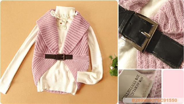 23. 粉色披肩式皮扣毛织马甲 $24-----现价$12 sold