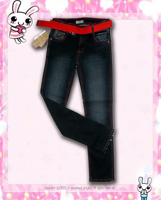 24. 深蓝色水洗铅笔裤/ 靴裤 (送红色帆布腰带,号码160) $30----现价$20