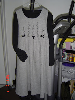 适合身材155-160的妹妹穿。 - 新增浅灰色毛料娃娃裙, 背后有绳,宽松可以自由掌握。配个黑色长袖T-shirt,觉得休闲可爱。$10