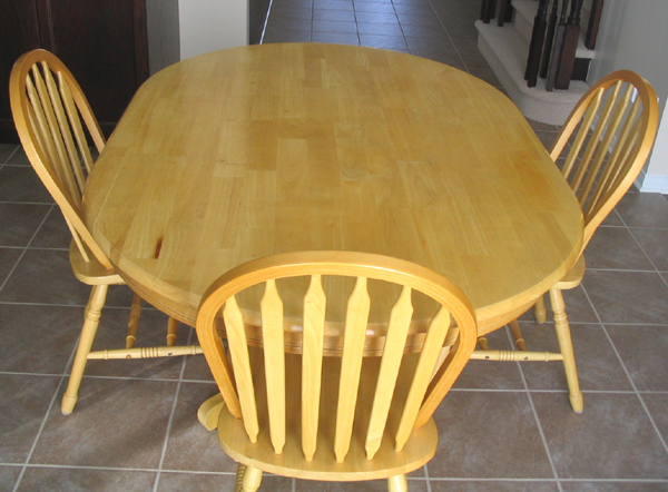 3 years old Oak table with pedestal table base, and 3 Solid hardwood Windsor arrow back chairs. Oval Oak Veneer Table (60"L, 42"W, 30"H) $150 or best offer.