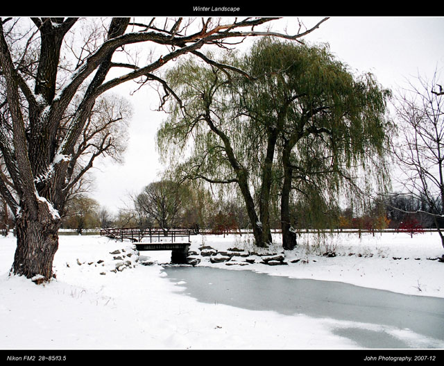 第一张很奇怪, 树叶子居然是绿的. 那地方好象是Dow's Lake 的叉湾, 我还站在那桥上钓过鱼...