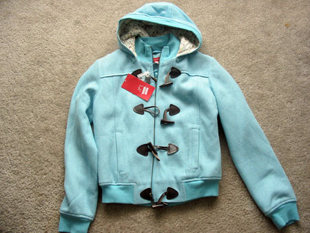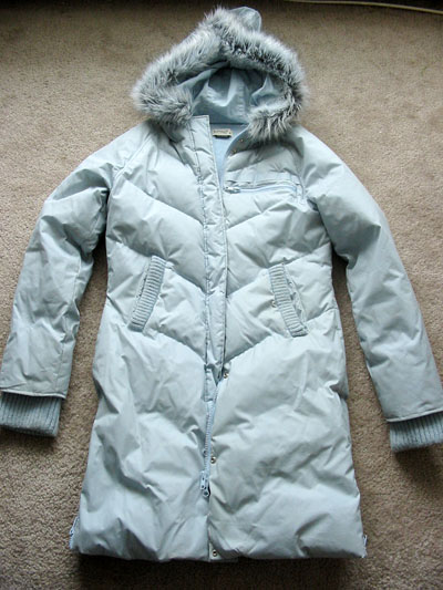 以下的几件都穿过几次,但是大致上是8-9成新。 我的衣服确实很多,外套都没怎么轮上穿。 1.家里邮寄过来的羽绒服,鹅绒的,质量非常的好,很轻薄,淡紫色。size XS-M (sold) $20 2.Le chateau 的棉大衣,流行的军衣样式,原价70多买的,穿过几次,size xs-s 现在$20 3.Le chateau 的绒夹克 里面都是白色的毛,非常的暖和 SIZE: XS $16 4.Bafflo 的长羽绒外套,很厚,很漂亮的淡蓝色,原价100多买的,现在$40 size S-M