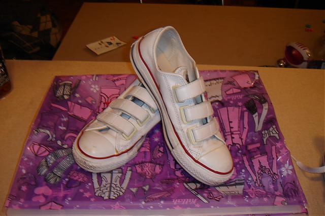 太多鞋没地方放, 白色convers, 家人买寄来的,太大了,适合38 号的, 就穿过几次,原价大概是75 加币左右,小羊皮的.因为白色比较容易弄脏,现在卖 $15
