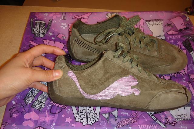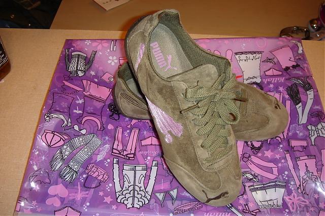 puma 军绿加紫色的logo, 36 号 150 多买来,也就穿过两三次, 卖 $65, 很新