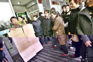 昨日中午1时许,两名男子和一名妇女来到储蓄所门前,高举一个写有“我在这里取到假钱”的纸牌子。举牌子的男子叫汪登渝,长寿人,是进城务工的农民工。“我昨天中午在这取了5000元准备借给小舅子,半小时后我们走到家乐福后发现钱是假的。”汪说,当时他在自动取款机上分三次取钱(前两次各取2000元,第三次取1000元),点清数额后将现金和卡带离储蓄所,随后来到家乐福买东西时发现异常,“我看到钱上的头像是黄色的,就觉得有问题。”汪的小舅子黄先生说。不过,对于汪登渝半小时内的行程,只有其小舅子能够作证。