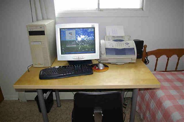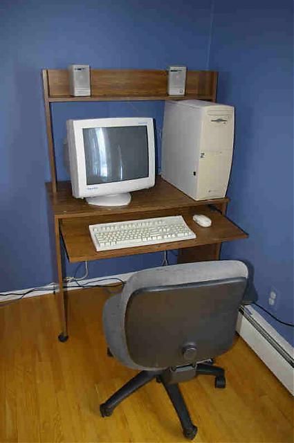 PIII 866 + PIII 733 双CPU, 带RAID接口, 384M RAM, 10G HDD, DVD ROM, 17"显示器, $100 BROTHER LASER打印机5合1, PRINTER, SCANNER, COPY MACHINE, TELEPHONE, FAX $125 桌子, $25