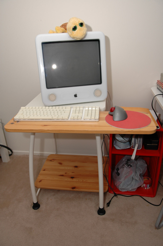 Apple eMac+ikea电脑桌+全套正版adobe creative suite(原价249+tax,这个是学生版)+自买正版10。4苹果系统(100左右) 一共$350吧 刚看到论坛上有卖就电脑的要490。。我这个价钱算很便宜了^^